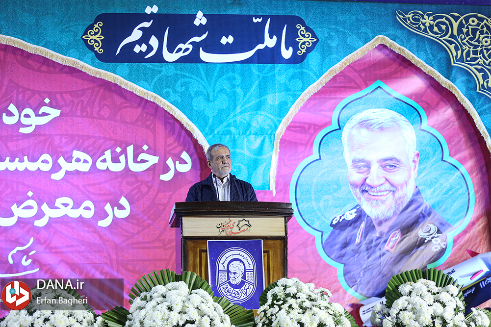 مراسم پنجمین سالگرد شهادت سردار شهید حاج قاسم سلیمانی، پنجشنبه ۱۳ دی ماه ۱۴۰۳ با حضور مسعود پزشکیان رئیسجمهور، خانواده شهید سلیمانی، برخی مسئولان سیاسی و نظامی و هزاران نفر از اقشار مختلف مردم در مصلی تهران برگزار شد.