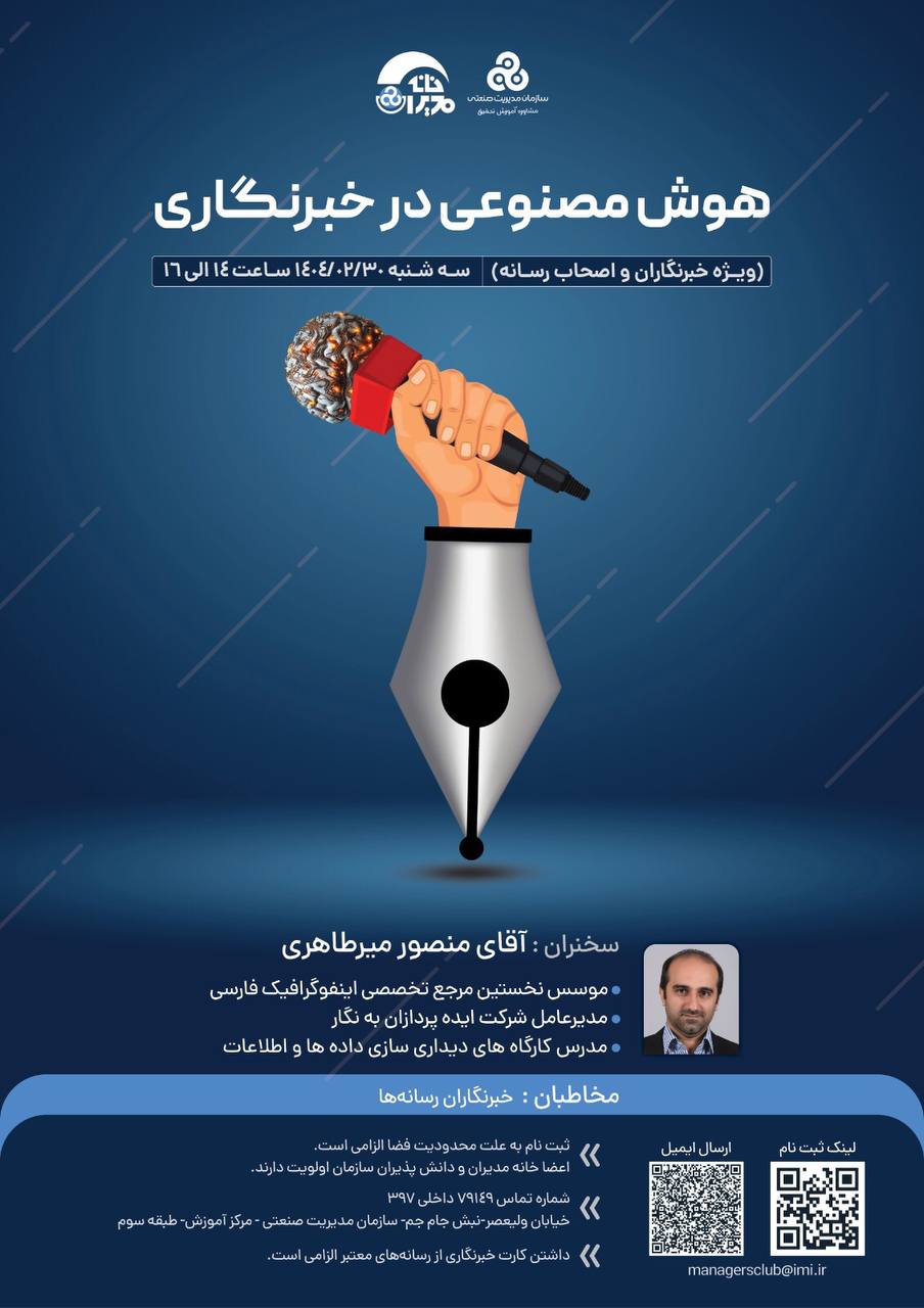 با ورود فناوری‌های نوین، خبرنگاری شاهد تحولات گسترده‌ای است. سازمان مدیریت صنعتی با برگزاری رویداد «هوش مصنوعی در خبرنگاری»، فرصتی ویژه برای خبرنگاران و اصحاب رسانه فراهم کرده تا با تأثیرات این فناوری بر حرفه‌ی خود آشنا شوند.