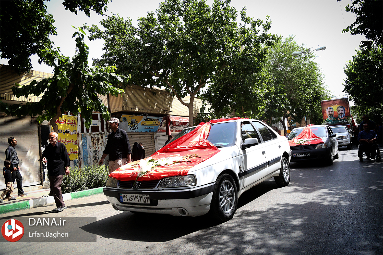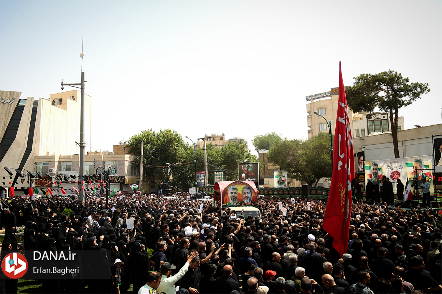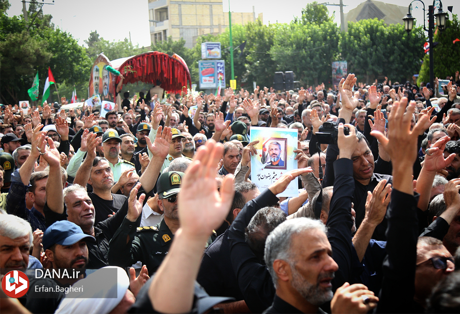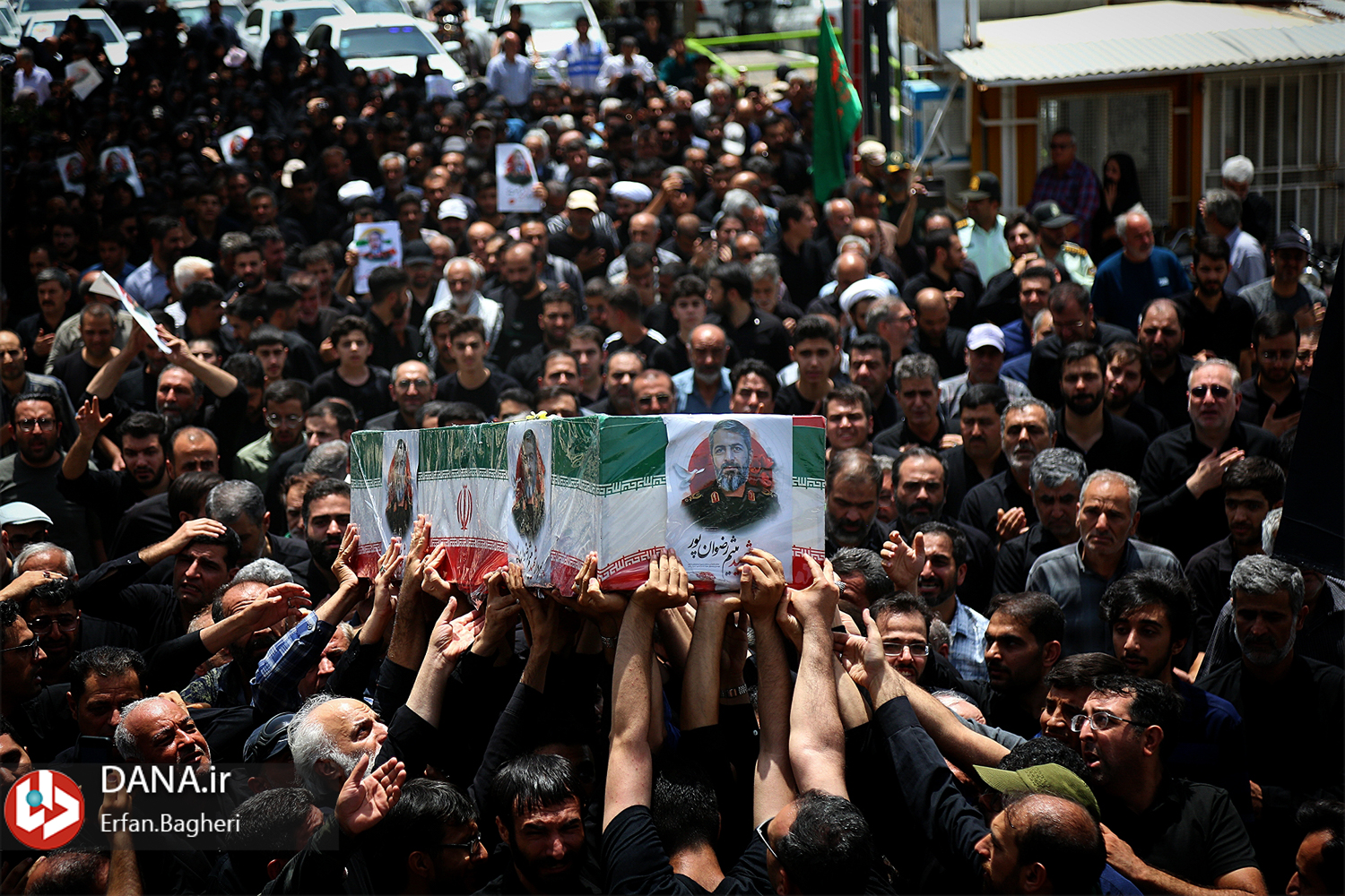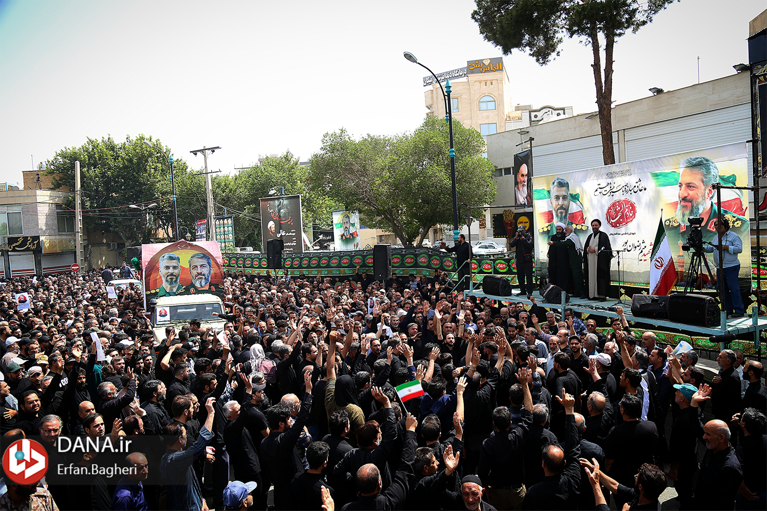 مراسم تشییع پیکر مطهر شهیدان سردار میثم رضوان پور و سرهنگ حامد صفاریان از شهدای حملات تجاوزکارانه رژیم صهیونیستی به کشورمان در خمینی شهر اصفهان برگزار شد.