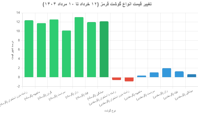 جزئیات نشان میدهد که گوشت گوساله با رشدی میانگین ۱۲.۱۷ درصدی، بیشترین سهم را در این افزایش قیمت داشته است.