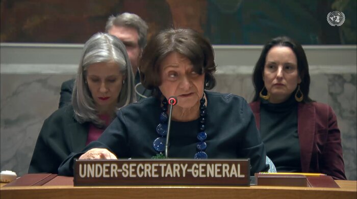 خانم «رزماری دیکارلو» معاون دبیرکل سازمان ملل در امور سیاسی در این نشست گفت که درخواست دبیرکل سازمان ملل را مبنی بر عقب نشینی همه طرف ها از رفتن به لبه پرتگاه تکرار می کند و تصریح کرد که همه باید هزینه انسانی و اقتصادی غیرقابل تحمل یک درگیری منطقه ای بالقوه را در نظر بگیرند.