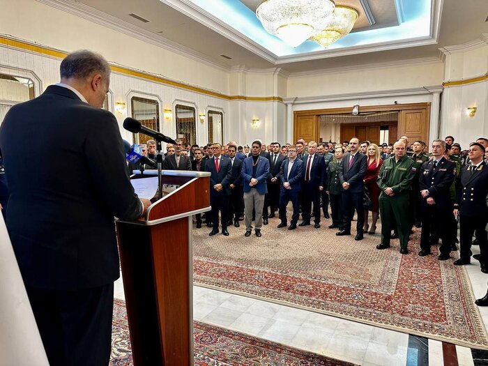 جلالی گفت: پس از سفر دیماه ۱۴۰۳ مسعود پزشکیان رئیسجمهوری اسلامی ایران و امضای معاهده جامع راهبردی میان دو کشور، امروز شاهد سفر آقای عراقچی وزیر امور خارجه به کشور روسیه هستیم که ایشان پس از ملاقات با آقای پوتین در این آیین حضور یافتهاند و این حضور به احترام ارتش جمهوری اسلامی ایران و تبریک گفتن این روز بزرگ و به احترام شما میهمانان عزیز است.