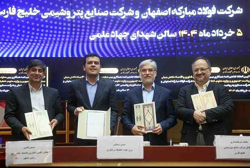 به گزارش خبرنگار اقتصادی شبکه اطلاع رسانی راه دانا؛ در یک حرکت استراتژیک، وزارت علوم، تحقیقات و فناوری، معاونت علمی، فناوری و اقتصاد دانشبنیان رئیسجمهوری، شرکت صنایع پتروشیمی خلیج فارس و گروه فولاد مبارکه اصفهان، تفاهمنامهای سهجانبه را به امضا رساندند. این امضای تفاهمنامه در ساختمان وزارت علوم برگزار شد و حضور مقاماتی چون حسین سیمایی صراف، وزیر علوم، حسین افشین، معاون علمی رئیسجمهور، محمد شریعتمداری، مدیرعامل شرکت پتروشیمی خلیج فارس و سعید زرندی، مدیرعامل گروه فولاد مبارکه، به آن اهمیت ویژهای بخشید.