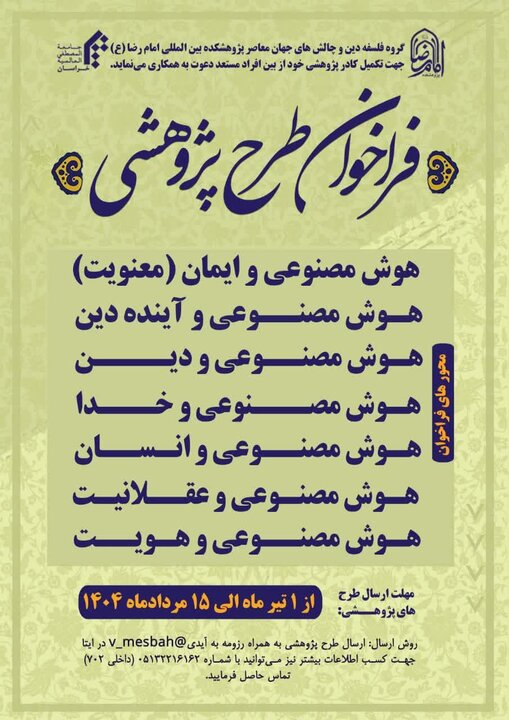 فراخوان طرح پژوهشی هوش مصنوعی در پژوهشکده بین المللی امام رضا(ع)
