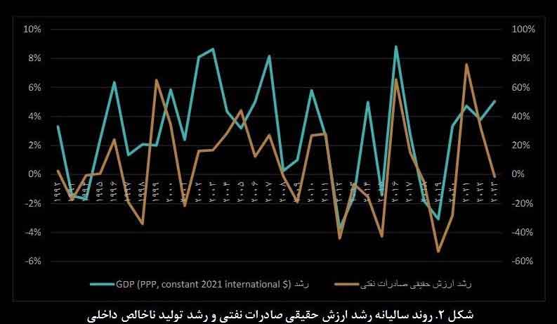 - هر بار که صادرات نفت کاهش یافته، GDP هم کاهش یافته است.