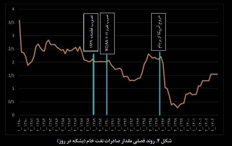 ۳. نمودار صادرات نفت پس از خروج آمریکا از برجام: