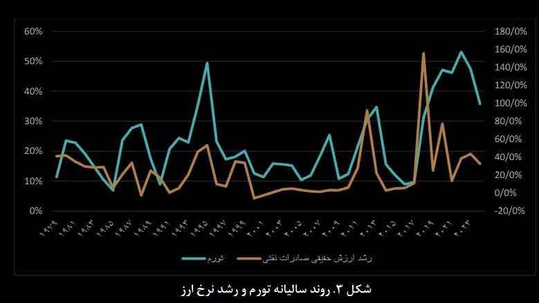 ۲. نمودار نرخ ارز vs تورم: