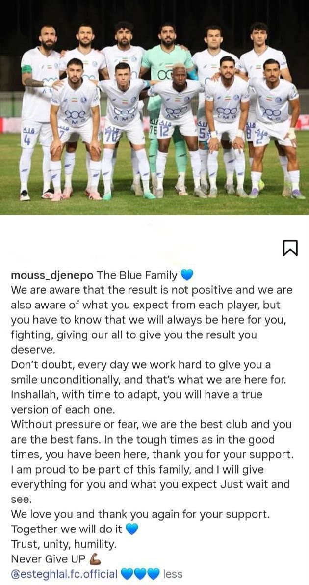 وینگر مالیایی استقلال با انتشار پیامی احساسی از هواداران این تیم عذرخواهی کرد و وعده داد که آبیپوشان به روزهای خوب بازخواهند گشت.