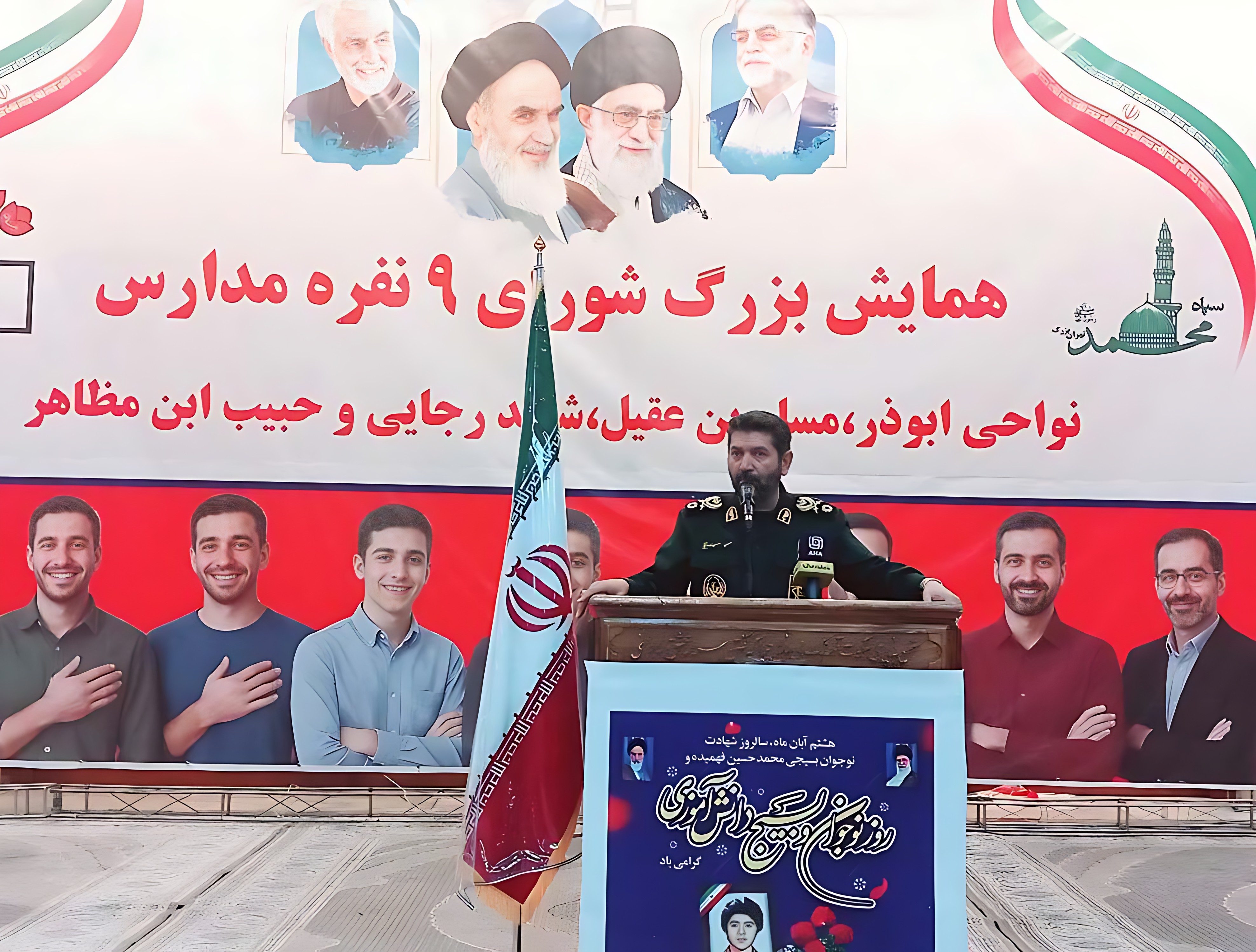 فرمانده سپاه محمد رسولالله (ص) تهران بزرگ، در حضور هزاران دانشآموز در حرم امام خمینی (ره) گفت:«همه مدیران، دانشمندان و شهدای بزرگ کشور، از همین نیمکتها و زیر سایه معلمهای متعهد بالا آمدند. امروز، شما دانشآموزان، نه فقط دانش میآموزید، بلکه مشقِ مدیریت جامعه را انجام میدهید.»