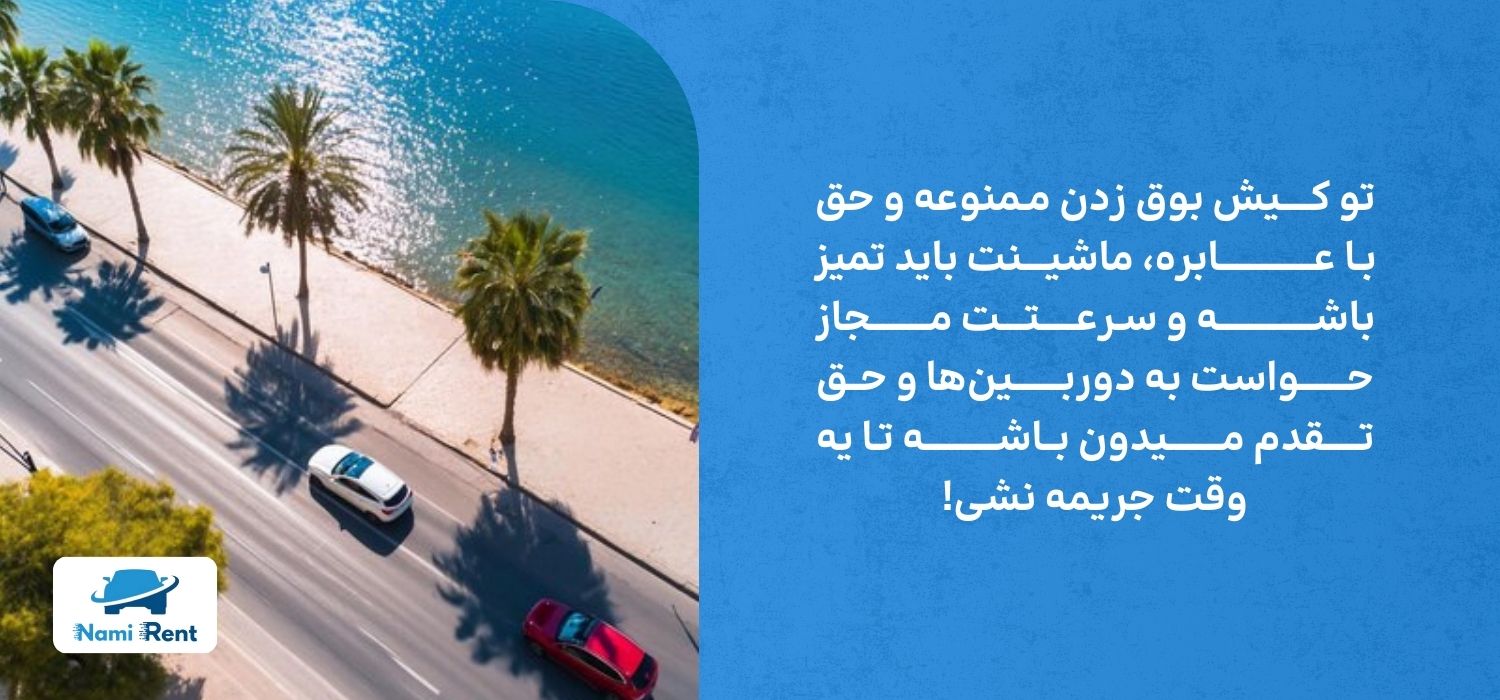 رانندگی در جزیره با تمام شهرهای ایران متفاوت است و آرامش خاصی دارد؛ آرامشی که مدیون رعایت دقیق مقررات است. این نظم بخشی از فرهنگ کلی و قوانین کیش است که همه ملزم به رعایت آن هستند. با توجه به اینکه دوربینهای هوشمند در تمام تقاطعها فعال هستند، عدم آگاهی از جزئیات قوانین رانندگی در کیش میتواند سفر شما را با جریمههای سنگین یا حتی توقیف خودرو تلخ کند. پس پیش از استارت زدن، حتماً این مقررات را مرور کنید.