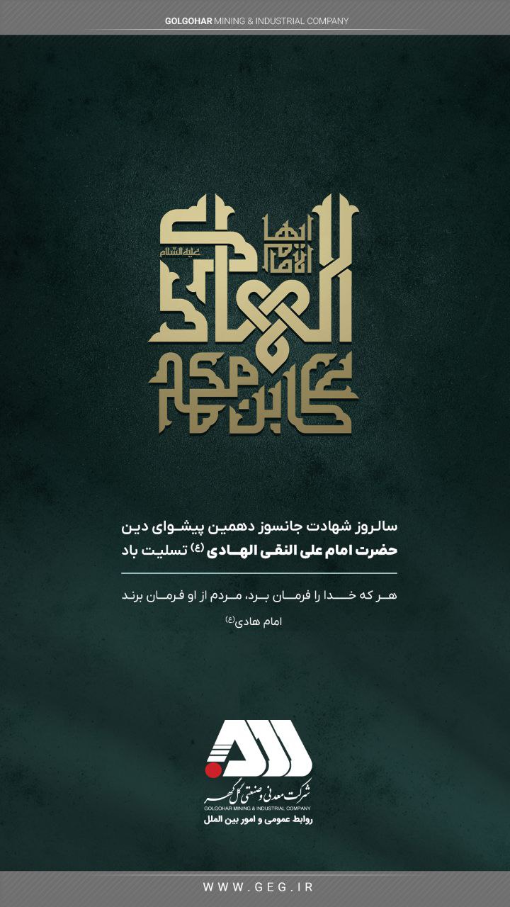 به گزارش شبکه اطلاع رسانی راه دانا؛ روابط عمومی شرکت معدنی و صنعتی گل گهر در پسترهایی شهادت امام علی النقی و امام محمد باقر و همچنین شهادت سردار سپهبد شهید حاج قاسم سلیمانی را تسلیت گفت.