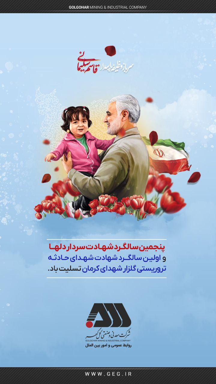 روابط عمومی شرکت معدنی و صنعتی گل گهر در پستری شهادت سردار سپهبد شهید حاج قاسم سلیمانی را تسلیت گفت.