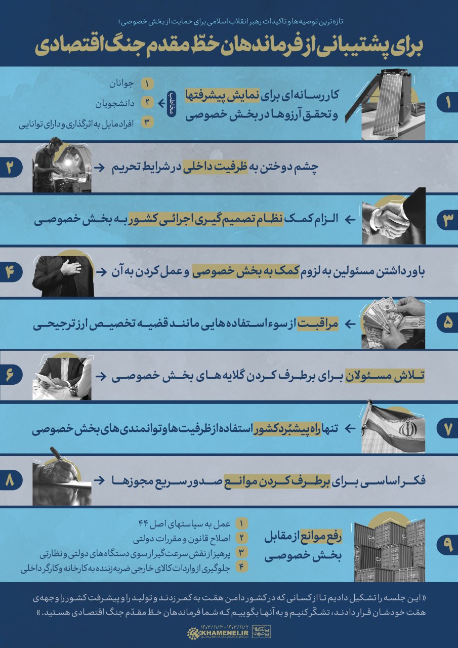جدیدترین توصیه‌های رهبر انقلاب برای حمایت از بخش خصوصی منتشر شد.