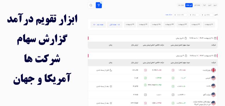 ابزاری است برای نمایش زمان دقیق انتشار گزارشهای مالی شرکتهای بورسی و شامل اطلاعاتی مانند EPS، درآمد، و پیشبینی تحلیلگران.