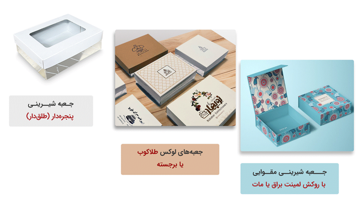 - تناسب با نوع شیرینی: شیرینی تر نیاز به جعبه ضد چربی و مقاوم دارد، در حالی که شیرینی خشک نیازمند تهویه و سبکی بیشتر است.