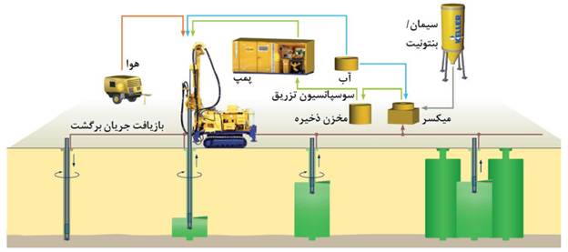 5. کنترل دقیق پارامترهای اجرایی مثل قطر و مقاومت ستون‌های تزریقی