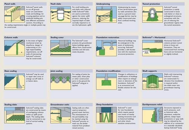 در ابتدا روش تزریق پرفشار تنها برای بهبود خصوصیات خاک در زیر پی سازه‌های عظیم کاربرد داشته اما استفاده از آن امروزه شامل گودبرداری، تونل‌سازی، دیوارهای آب بند نیز شده است به طوری که در حال حاضر تزریق پرفشار به یک روش سریع با کاربردهای متنوع و به عنوان یکی از محبوب‌ترین روشهای بهسازی خاک بدل شده است.