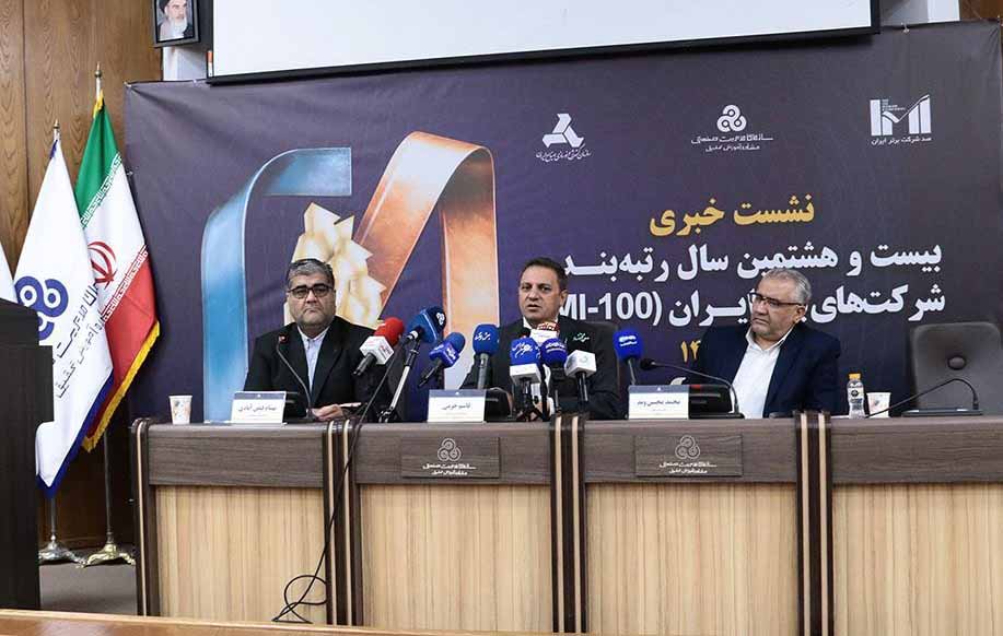 نشست خبری بیستوهشتمین سال رتبهبندی شرکتهای برتر ایران امروز با حضور قاسم خرمی، مدیرعامل سازمان مدیریت صنعتی، محمد محسن وند، معاون مشاوره و تحقیق سازمان، و بهنام فیضآبادی، مدیر رتبهبندی IMI-100 در تهران برگزار شد.