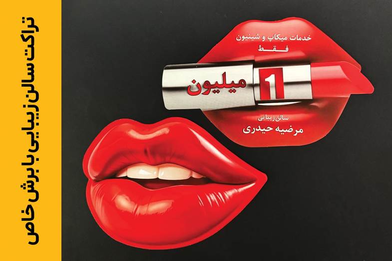 آرایشگاه و سالن زیبایی: تراکت به شکل یک رژ لب، شانه، یا عطر.