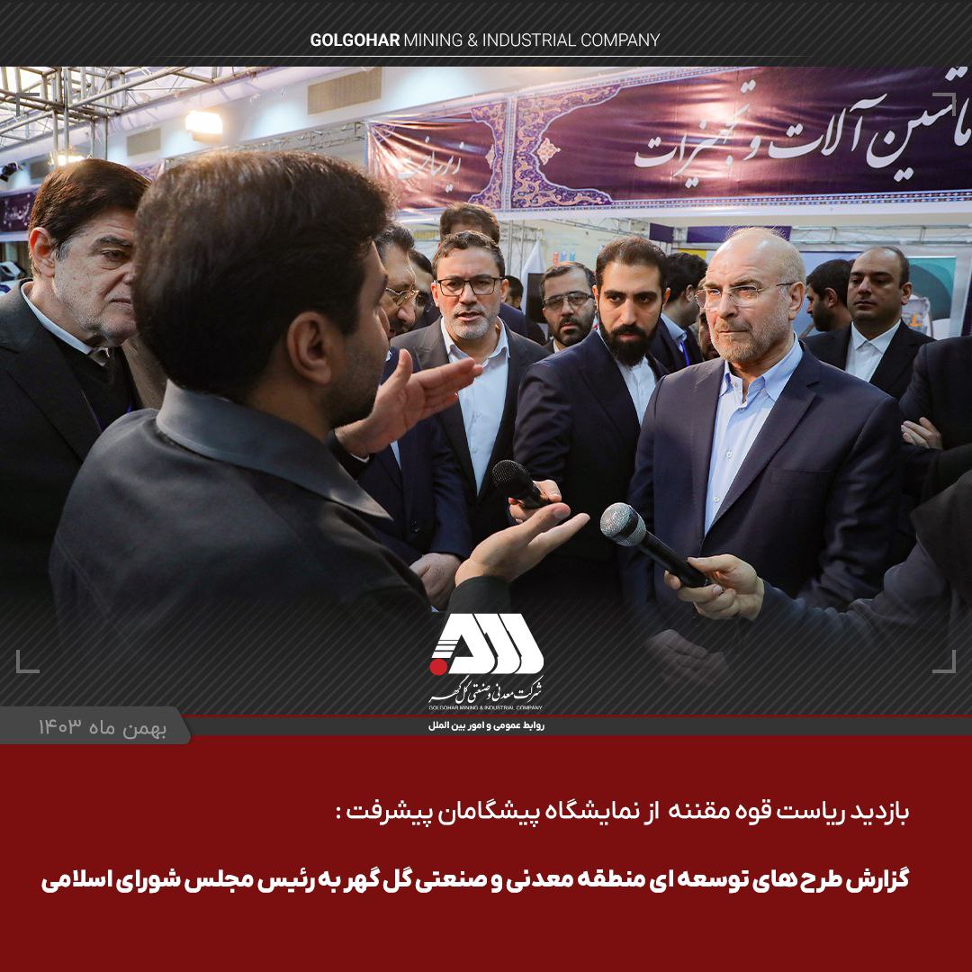 ارائه گزارش طرح های توسعه ای منطقه معدنی و صنعتی گل گهر به رییس جمهور و رییس مجلس شورای اسلامی در نمایشگاه پیشگامان پیشرفت